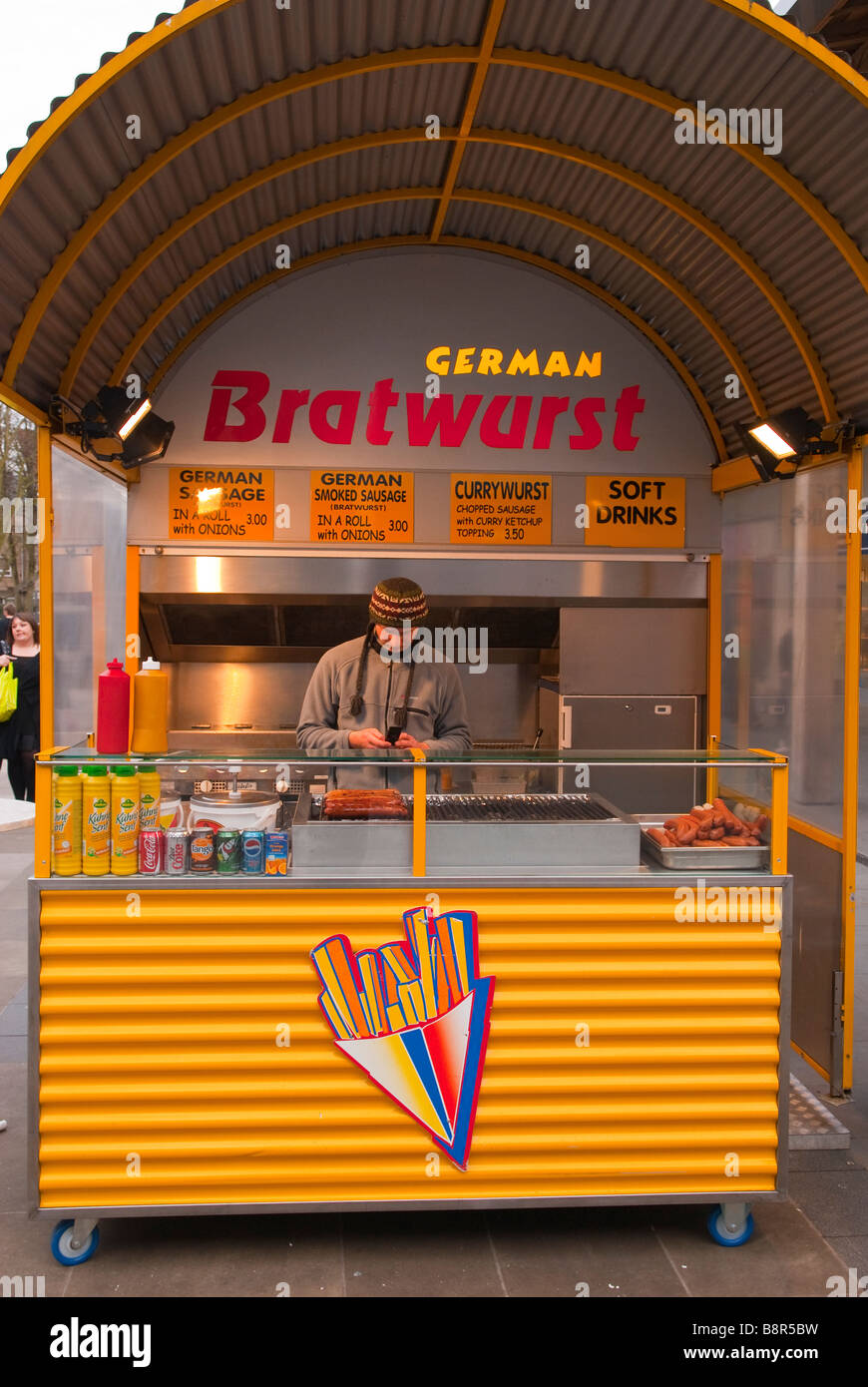 A german fast food Bratwurst sausage stall selling hot ...